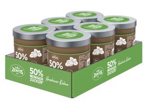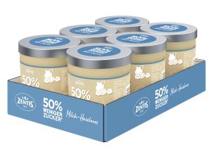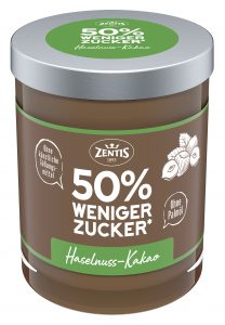 4002575643398 Zentis 50% weniger Zucker Creme 200g, 60er Display 2-fach sortiert